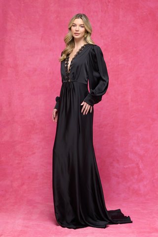 The Birdie is BACK! A sophisticated satin design perfect for any elegant occasion. Featuring graceful bishop sleeves and a flattering V-neckline adorned with delicate lace details, this dress exudes timeless charm. The cinched waist accentuates your silhouette, creating a sleek and polished look. Whether it’s an evening event or a special celebration, the Birdie Dress promises effortless style and sophistication.